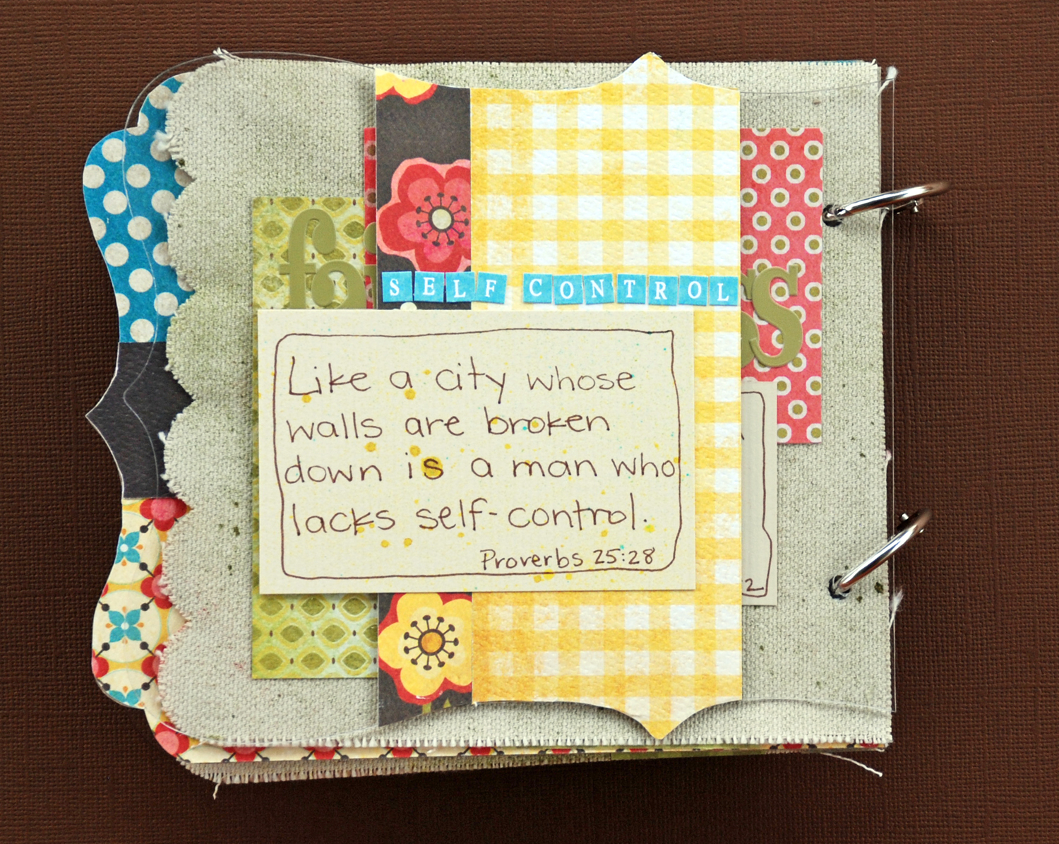 When I saw that the theme for this month's hop was Fruit of the Spirit, I knew just what I wanted to do! My kids LOVE the Music Machine CD and it plays constantly in our car! I am glad that they know what the Fruits are but I would like my 7 year old to learn some of the verses that address the Fruits. I made this little book so that he (and eventually the 4 year old!) can start to read these verses and memorize them. I used a Punky Sprouts Sweetie Sprout album and some of the new Stella and Rose paper from MME. It was so fun to put together this album!Every month a group of bold women gathers to make the Name of the Lord famous and to share the talents we have been given by Him. We also like to share a little bit of Truth that we have learned from the Bible and/or a bit about how He has impacted our lives. This month the theme is “The Fruit of the Spirit”.